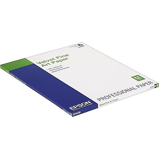 Epson velvet fine art paper for epson pro graphics printers white 17 x 22 25 sheets.